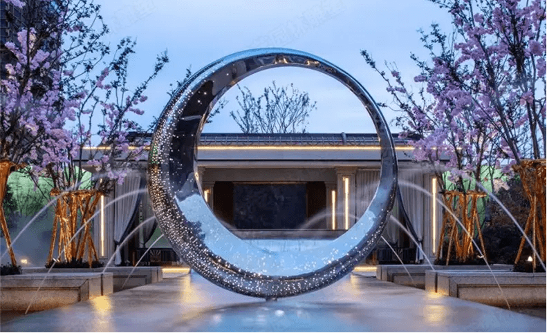 同时不锈钢这种材料还具有很强的可塑性,可以用打造成圆环、球面等形状,颜色、配套点缀都可以自由的调节定做。它的制作原材料也简单,成本相对较低。大小非常灵活,小至室内装饰摆件,大至数十米的室外雕塑。非常适合城市景观美化的采用。